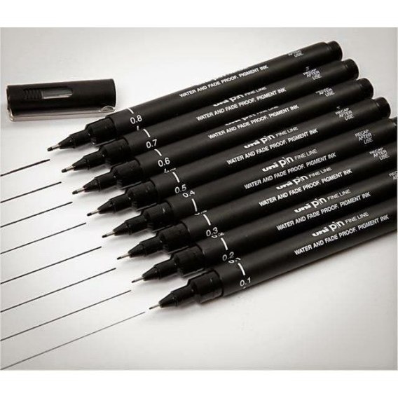 * różne grubości końcówek: kolor tuszu czarny - 0,05 mm, 0,1 mm, 0,2 mm, 0,3 mm, 0,5 mm, 0,8 mm kolor tuszu niebieski, czerwony - 0,1 mm, 0,2 mm, 0,5 mm