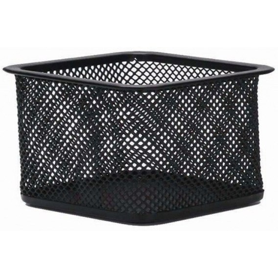 * kwadratowy pojemnik na spinacze wykonany z metalowej siateczki powlekanej lakierem